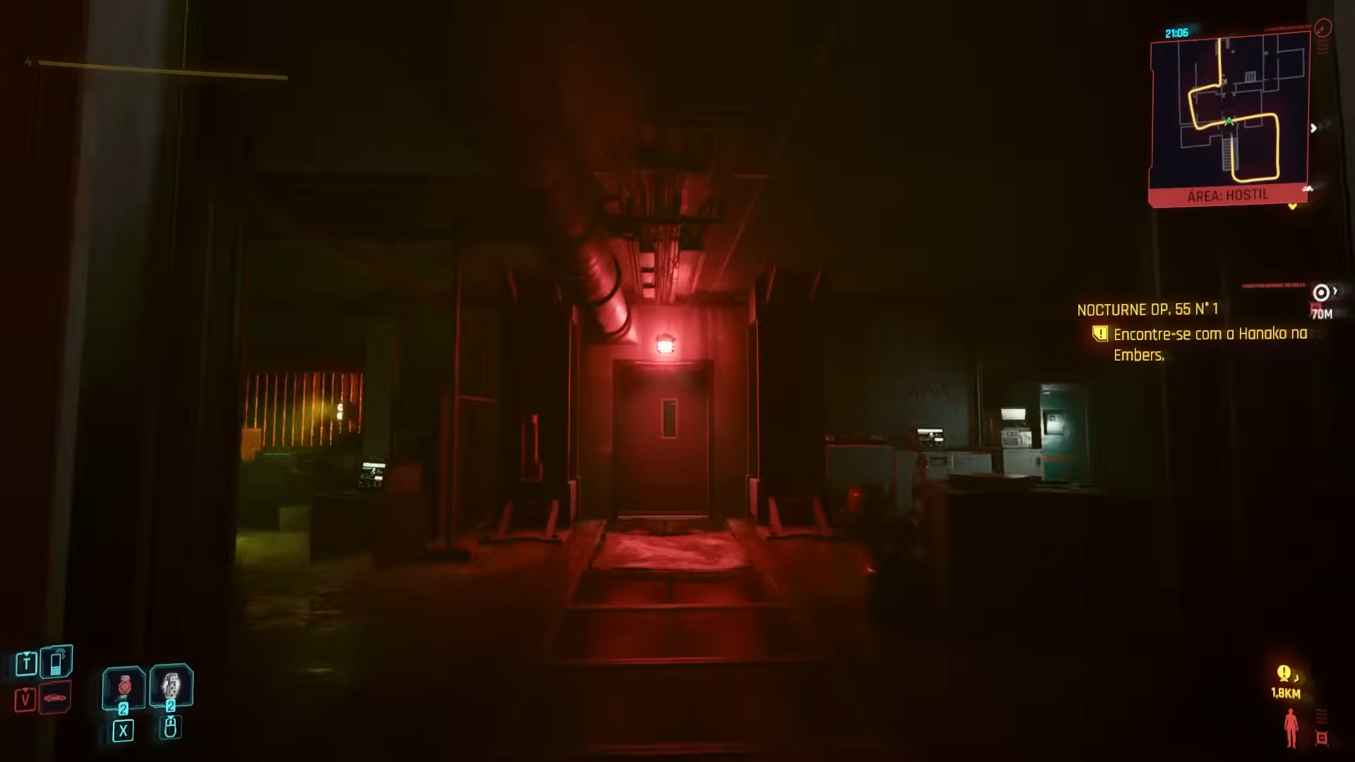 Chegando lá, é preciso entrar no prédio onde a missão se desenrola e descer até o último andar. Durante a quest, a porta com luz vermelha estará aberta, e basta seguir por lá (não são necessários pontos de habilidade para passar).
